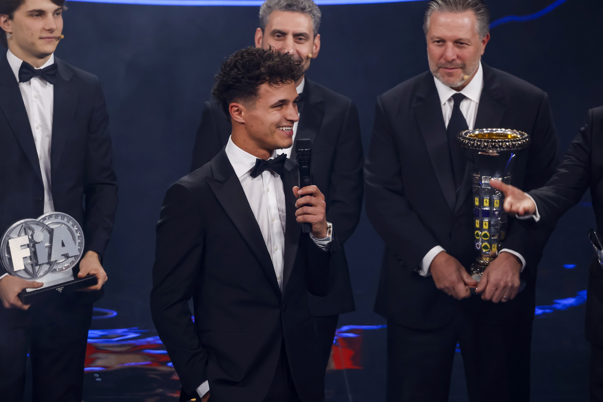 Wcześniej Norris nie omieszkał podziękować odpowiednim osobom za swoje tegoroczne dokonania. Skierował je zwłaszcza w stronę Zaka Browna i Andrei Stelli, którzy w imieniu McLarena odbierali trofeum za obronę mistrzostwa świata wśród konstruktorów. Swoją statuetkę za 3. miejsce w klasyfikacji generalnej otrzymał z kolei Oscar Piastri.