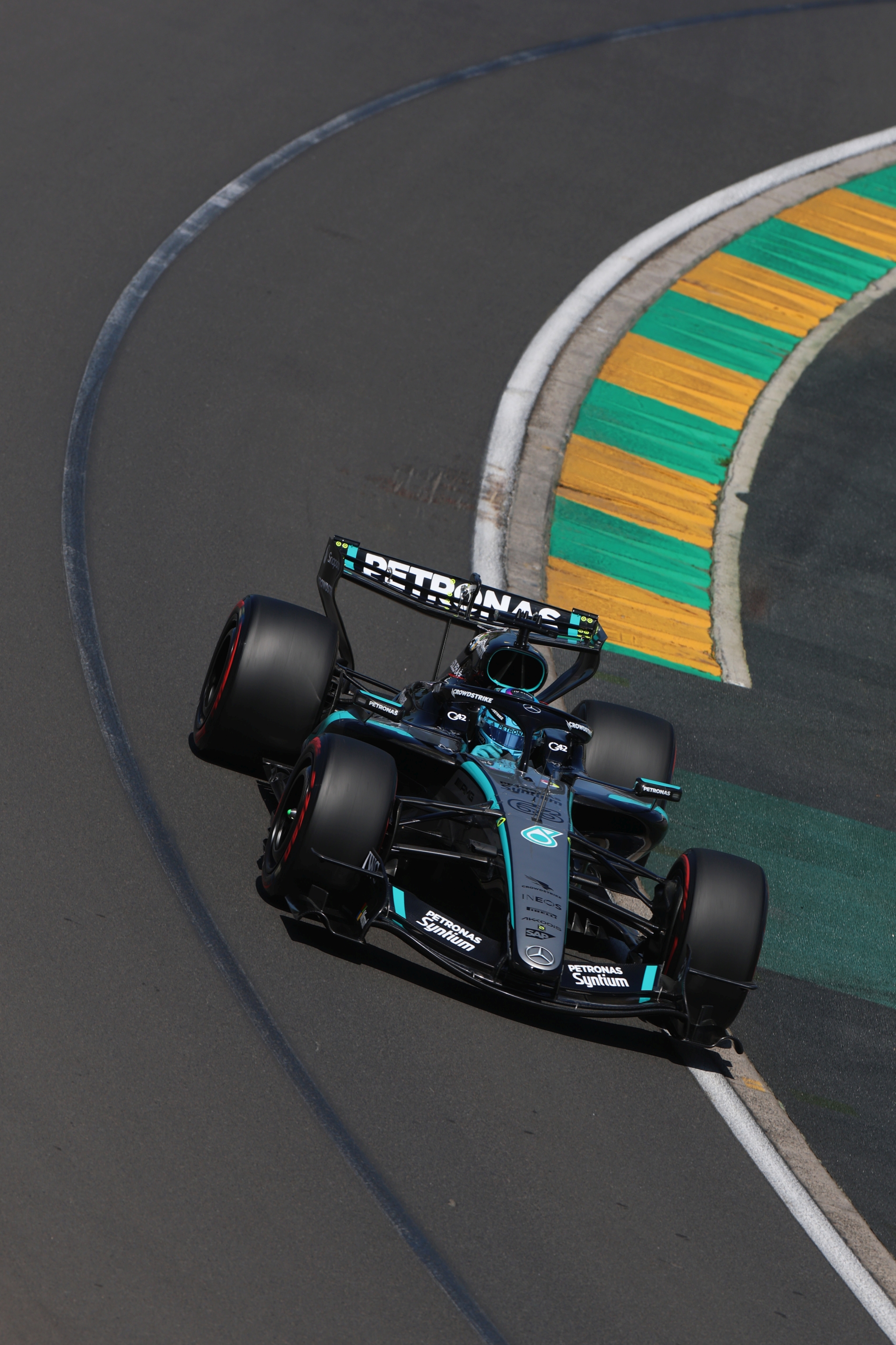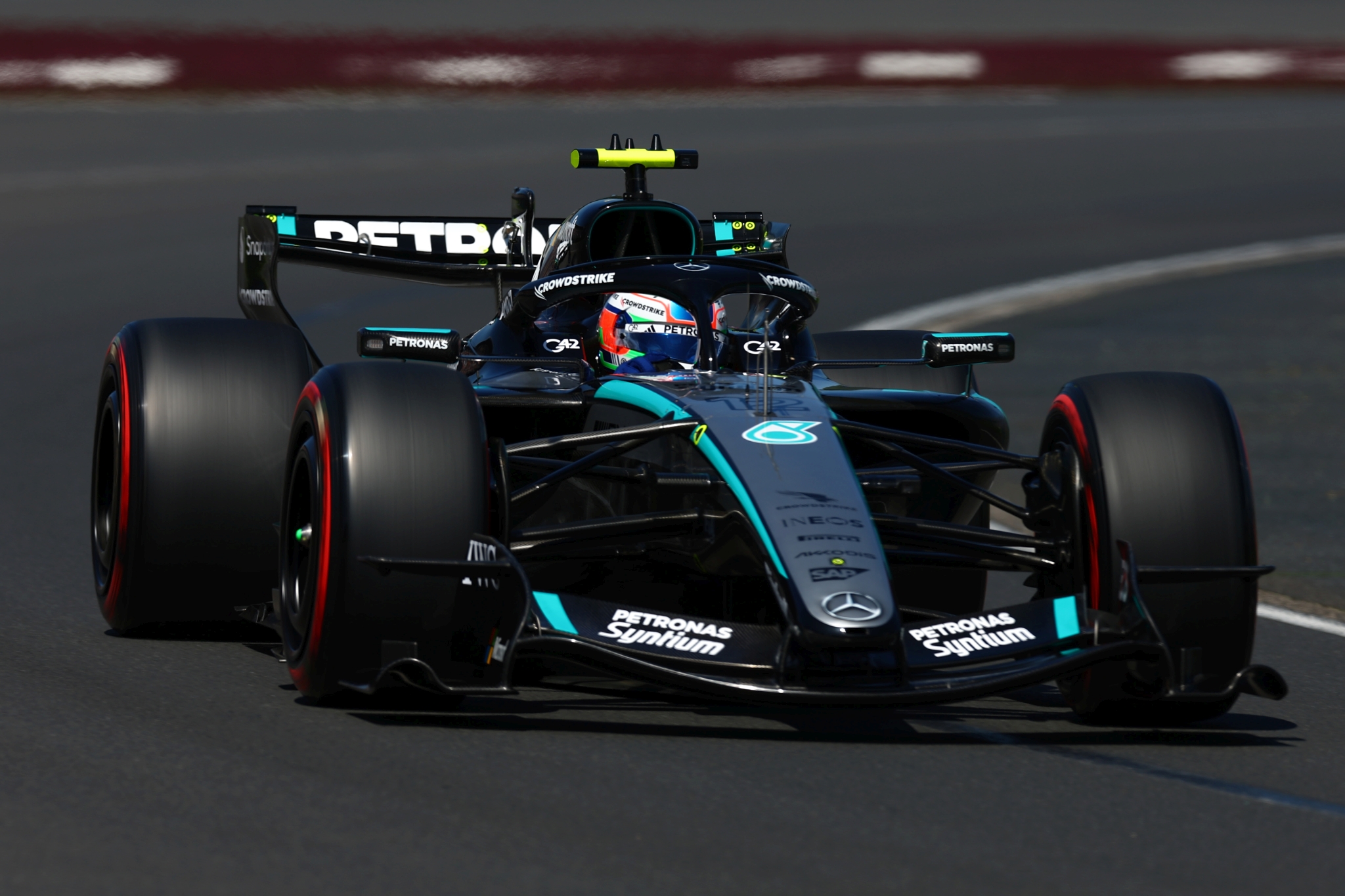 Jeśli chodzi o czołowe pozycje w tabeli z czasami, tutaj od samego początku mocniejsze tempo zaczęli pokazywać kierowcy Mercedesa i Oscar Piastri. Ta trójka dołączyła do ciągle świetne radzącego sobie Ferrari. Russell i Kimi Antonelli szybko jednak przesiedli się na opony z czerwonym paseczkiem, dzięki czemu to oni legitymowali się dwoma najlepszymi wynikami przed końcem otwierającej tercji.