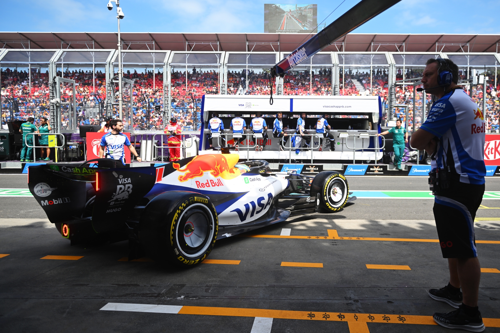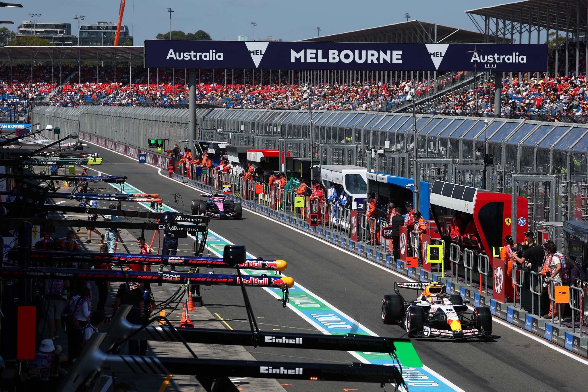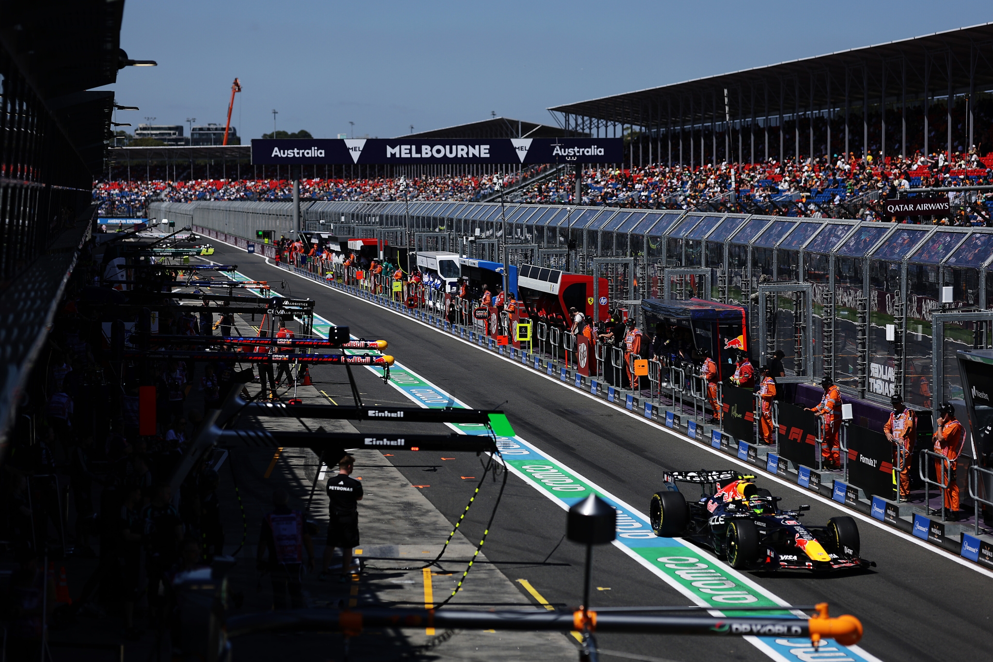 Stawkę z alei serwisowej ponownie wyprowadził Nico Hulkenberg, a za nim ruszyła duża grupa kierowców. Doprowadziło to do nietypowej sytuacji w alei serwisowej, ponieważ próbujący wbić się do kolejki, George Russell, uderzył w samochód Arvida Lindblada i uszkodził swoje przednie skrzydło. Konieczna okazała się jego wymiana, a sędziowie zajmą się tym zdarzeniem po zakończeniu sesji.