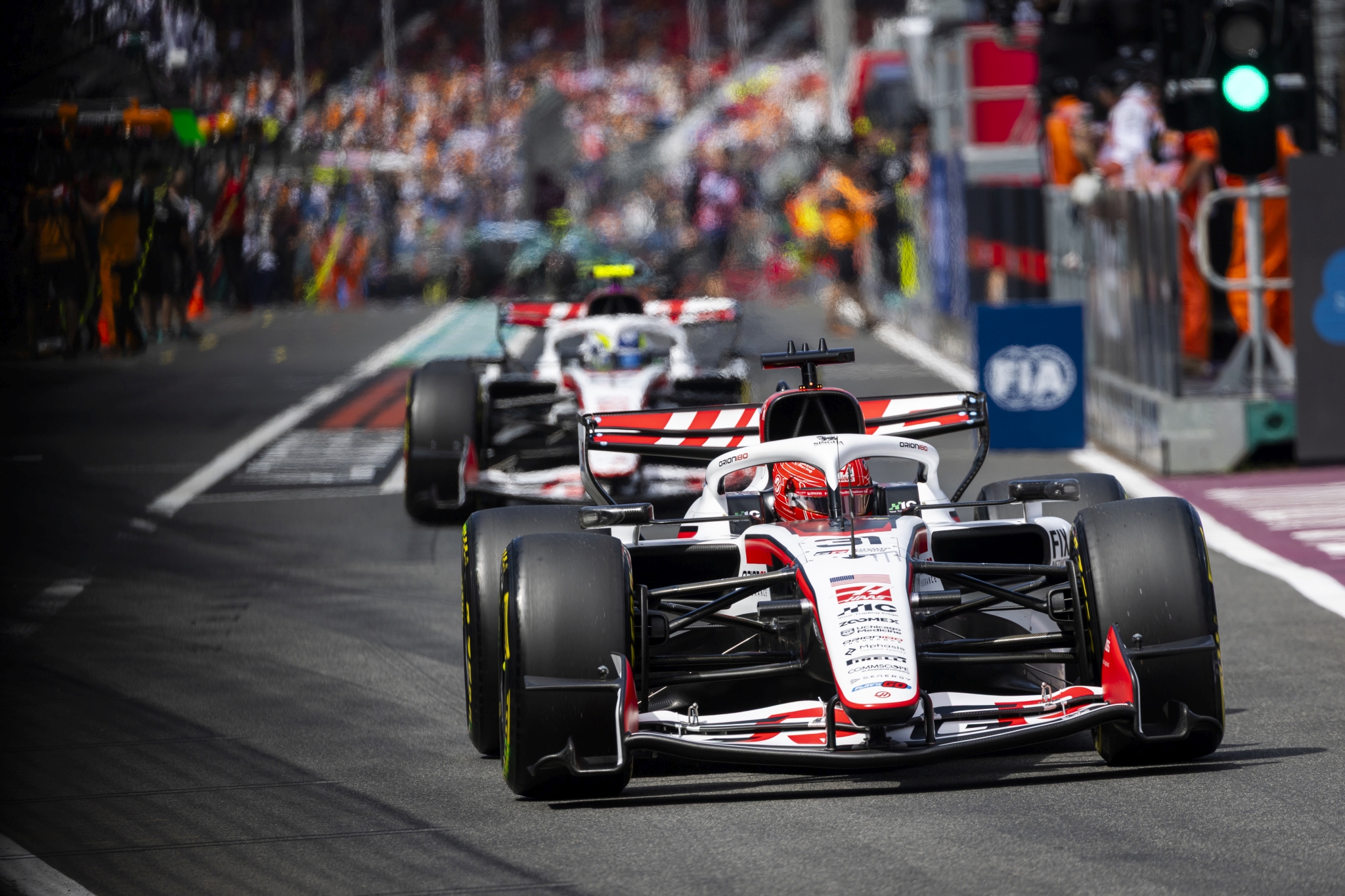 Całą stawkę na tor wyprowadził Nico Hulkenberg, a za nim wyjechała cała masa samochodów. Dłużej w garażach pozostali mający pewne problemy w treningach, Max Verstappen, Lance Stroll, Carlos Sainz oraz Kimi Antonelli. W przypadku Włocha mechanicy walczyli o odbudowę samochodu po kraksie z sobotnich porannych zajęć.